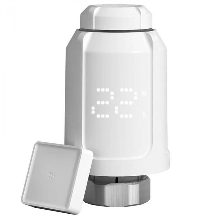 The GTZ10 thermostatic head is used to regulate temperature in residential and commercial spaces. It is designed for installation on radiator valves with a stem. The device is controlled manually using an intuitive knob or remotely via the TUYA Smart app. The device connects to a Wi-Fi network via the TUYA ZigBee 3.0 gateway, which is not included with the device. The head allows for temperature measurement using an internal temperature sensor or a dedicated wireless external sensor, the GTZ10S, which is ordered separately.